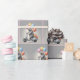 Mignonne souris grise sur un scooter avec ballons d'anniversaire et fleurs.