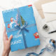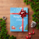 Papier d'emballage de Noël élégant et minimaliste avec une licorne tirant Père Noël traîneau vers un arbre de Noël décoré de billes d'argent. La licorne a une crinière et une queue rouges et dorées et le traîneau porte Père Noël avec de nombreux cadeaux. Le papier d'emballage comprend également le salut "Joyeux Noël" et le nom Joanne. Pensez à personnaliser le nom ! Vous pouvez également changer l'accueil en "Joyeux Jours fériés" si vous le souhaitez. Sur un arrière - plan bleu avec des flocons de neige.