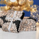 Dahlias roses sur un emballage cadeau arrière - plan noir