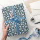 Wrap your gifts in timeless charm with this daisy wrapping paper. Featuring a repeating pattern of delicate white floral motifs on a deep muted teal background, this design feels calm, elegant, and effortlessly stylish. The clean floral layout pairs beautifully with rustic twine or satin ribbon for a thoughtfully wrapped present.