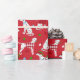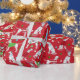 De mignons chiens de Noël dans des tenues de vacances festives. Dalmatien aux manteaux noirs et blancs portent des chapeaux de Père Noël, des bois, des chandails sur un arrière - plan de vacances aux ornements épars.