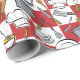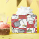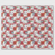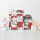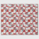 Motif rouge et blanc de damier avec une série de batteries de cuisine.