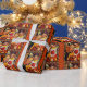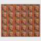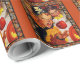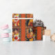 Papier d'emballage d'Halloween qui montre une drôle d'image du milieu du siècle d'enfants en train de frotter pour des pommes à une fête costumée d'Halloween. Un garçon regarde sa dent voler dans la pomme.
