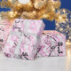 Papier Cadeau Décor Festif Fuchsia Roses Nuages