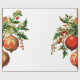 Envelopper le papier avec une illustration de style vintage. 3 boules de Noël rouges entourées de saints verts et de baies. Design rétro élégant.