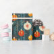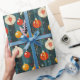 Envelopper le bonheur un cadeau à la fois avec ce rétro funky accroché baubles de noël papier d'emballage avec des boules d'arbre de noël orange vif sur un arrière - plan rayé bleu parfait pour cette saison de vacances! N'oubliez pas de visiter le magasin Wrap Happy pour des idées d'emballage cadeau plus uniques et plus adorables.
