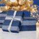 Papier Cadeau Dénim déchiré : tissu de jean bleu.