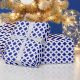 Un motif audacieux et géométrique de gros et petits diamants de la marine sur un arrière - plan blanc. Le blanc forme un treillis qui sépare les formes diamant bleu foncé.