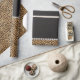 Empreinte Leopard et design en cuir noir avec strass en diamant blanc.