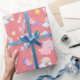 Papier Cadeau Dinosaure doux rose arc-en-ciel Motif pastel