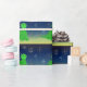 Un design de vacances amusant avec de mignons dinosaures verts avec de longues queues sur une nuit enneigée avec beaucoup de jolis flocons de neige tomber.
