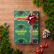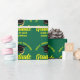 Ce papier d'emballage moderne vert et jaune personnalisé pour la fête de fin d'études supérieures présente une typographie classe de votre nom de lycée ou de collège pour la classe de 2025. Customisez avec votre année de graduation sous le script manuscrit chic et le casquette noir grad pour un grand enveloppement cadeau personnalisé pour diplômé.