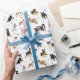 Un motif de chien optimiste et coloré. L'espace entre les chiens est rempli d'os et de pattes colorés.