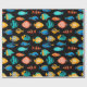 Divers graphiques de poissons tropicaux colorés sur arrière - plan noir, motif continu