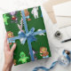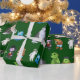 Papier d'emballage vert représentant tous les monstres du livre Ten Little Monsters Standing in a Line.
