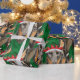 Un chien Doberman adorable à la mode dans un casquette elfe mignon et une écharpe d'hiver verte est modelé sur ce papier cadeau de vacances amusant pour les amoureux des animaux de compagnie.