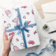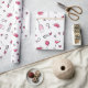 Papier d'emballage blanc avec gribouillis à thème nuptiale en noir, rose pâle et rose chaud pour une douche nuptiale ou une fête de bachelorette. Le motif de doodle comprend des anneaux en diamant, des lunettes de cocktail, des lèvres brillantes, des ballons, des coeurs et des rouges à lèvres.