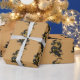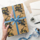 Papier à envelopper conçu avec des dragons d'or et de noir fouettés à l'allure impressionnante.