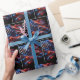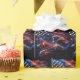 Une représentation vibrante du drapeau américain présente des motifs tourbillonnants de rouge, blanc et bleu, avec des étoiles dressées contre un arrière - plan dynamique