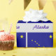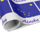 Enveloppez vos cadeaux dans le style de l'Alaska avec ce document qui comporte la conception distinctive d'étoile en bleu et or du drapeau d'état de l'Alaska. Sous chaque image de drapeau est le texte personnalisable en manuscrit bleu "Alaska". Les images et le texte de drapeau sont placés sur un arrière - plan de gris argenté.