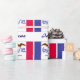 Enveloppez vos cadeaux dans le style de l'Iowa avec ce document qui comporte le drapeau rouge, blanc et bleu distinctif d'état de l'Iowa, accomplissent l'aigle tenant un ruban. Sous chaque image de drapeau est le texte personnalisable en manuscrit bleu-foncé "Iowa". Les images et le texte de drapeau sont placés sur un arrière - plan blanc.