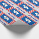 Enveloppez vos cadeaux dans le style Wyoming avec ce papier qui présente le drapeau de l'état du Wyoming rouge, blanc et bleu distinctif, avec la célèbre image de bison et le sceau de l'état. Sous chaque image de drapeau se trouve le texte personnalisable dans le script bleu "Wyoming". Les images et le texte du drapeau sont placés sur un arrière - plan gris argenté.
