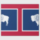 Ce design présente le drapeau de l'état du Wyoming, qui est un état doublement enclavé dans l'ouest des États-Unis. C'est le deuxième état le moins peuplé du pays. Le Wyoming est bordé au nord par le Montana, à l'est par le Dakota du Sud et le Nebraska, au sud par le Colorado, au sud-ouest par l'Utah et à l'ouest par l'Idaho et le Montana. Le surnom officiel du Wyoming est "Etat de l'Égalité", mais il est aussi parfois connu comme "Etat Cowboy" ou "Big Wyoming". La moitié ouest du Wyoming est principalement couverte par les chaînes des Rocheuses, tandis que la moitié est de l'état est une prairie à haute altitude appelée les Hautes Plaines. Le parc national de Yellowstone est partiellement dans le Wyoming et le parc national de Grand Teton est entièrement dans l'état. Cheyenne est la capitale de l'état et la ville la plus peuplée du Wyoming. Le drapeau de l'état du Wyoming comprend une silhouette de bison américain. Le rouge symbolise les Amérindiens et le sang des pionniers qui ont donné leur vie. Le blanc est un symbole de pureté et de droiture. Le bleu est la couleur du ciel et des montagnes lointaines.