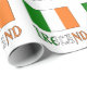 Le papier d'emballage montre le drapeau irlandais avec ses trois bandes verticales de vert, blanc et orange. Le design sur ce papier cadeau d'emballage montre le drapeau avec le monde IRLANDE sous, dans les couleurs du tricolore. Le design est carrelé pour être le meilleur.