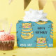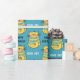 Voici du papier d'emballage d'anniversaire mignon et coloré pour "Kool Kat" dans votre vie! Il présente un motif répétitif d'un chat jaune satisfait portant des rayures bleues. Le texte blanc dit "KOOL KAT", et le texte noir coutume dit actuellement "HEUREUX ANNIVERSAIRE".