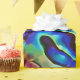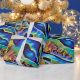 Ce beau papier d'emballage peut être utilisé pour n'importe quelle occasion. C'est un motif de coquille d'ormeau irisé saisissant. Des tourbillons de nuances bleu foncé se déclinent en bleu clair et vert, ainsi que des teintes d'orange jaune. Ça me rappelle le feu et la glace ! Peu importe ce qu'il vous rappelle, c'est un design vraiment frappant.