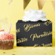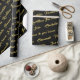 Les mots et phrases français couvrent ce papier d'emballage noir et or avec des expressions comme "J'envoie mon amour", "beau", "plein de vie", "merveilleux" et plus encore.