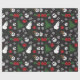 Aimez-vous votre emballage cadeau de vacances noir comme votre âme? Ce motif offre un tour gothique sur les motifs traditionnels de Noël avec des flocons de neige et des formes d'étoiles formées d'os squelettes blancs, des ornements de Noël en forme de crâne et des baies sèches, des couronnes et des arbres de Noël éffrayants, des ornements et des bonbons de neige. Mes illustrations en blanc, rouge et vert sont mises contre un arrière - plan noir. Donc ce papier d'emballage a un look merveilleusement mauvais qui est parfait pour quiconque préfère que leur Noël ressemble un peu plus à Halloween.