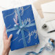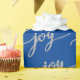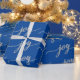 Ce beau et élégant papier de Noël bleu et argent présente le mot "Joy" en faux script de calligraphie de parties scintillant argent sur un arrière - plan bleu de Noël, et est sûr de vous amener ainsi que vos destinataires dans l'humeur et l'esprit de la saison des Fêtes.
