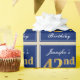 Cette conception simple et élégante de papier d’emballage comporte un message personnalisé comme "42e anniversaire de Jennifer" (avec le "42e" à l’allure fausse/imitation dorée) dans une zone carré de couleur bleue avec un contour de bordure simple. Le nom est dans un élégant texte blanc de couleur script, et peut être customisé. Un papier comme celui-ci pourrait peut-être être utilisé pour envelopper des cadeaux d'anniversaire pour quelqu'un qui célèbre son quarante-deuxième anniversaire. [~Z0000221]