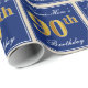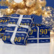 Papier Cadeau Elégant, Bleu, Faux Or 90ème Anniversaire + Nom