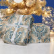 Belle aquarelle motif floral en noir blanc, beige et bleu poussiéreux, parfait pour envelopper de beaux cadeaux.