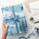 Style vintage hiver merveilleux bois avec cerf dans les tons bleus parfait pour l'emballage cadeau de Noël festif