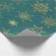 Élégant Cyan Turquoise Gold Snowflakes Motif Wrapping Papier.