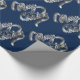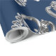 Élégant Faux Argent Foil Script Motif Chic Festive Bleu Cadeau de Noël Papier d'enveloppement