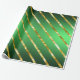 Élégant papier d'enrobage Motif à bandes Diagonales Vert Or.