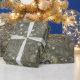 Papier Cadeau Élégant gris argenté, bleu et ivoire floral & perl
