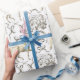 Monochrome toile motif avec des illustrations vintages d'un cheval arabe blanc, hydrangée luxuriante richement décorée avec des cravates d'arc, design super tendance et preppy pour tous les amateurs de cheval et d'équestre, bachelorette, anniversaire de fille, sweet sixteen, remise des diplômes, enveloppement cadeau de vacances ou toute autre occasion.