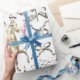 Monochrome toile motif avec des illustrations vintages d'un cheval arabe blanc, hydrangée luxuriante richement décorée avec des cravates d'arc, design super tendance et preppy pour tous les amateurs de cheval et d'équestre, bachelorette, anniversaire de fille, sweet sixteen, remise des diplômes, enveloppement cadeau de vacances ou toute autre occasion.
