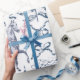 Motif de toile bleu français monochrome avec illustrations vintages d'un cheval arabe blanc, hydrangée luxuriante richement décorée avec des cravates d'arc, design super tendance et preppy pour tous les amateurs de cheval et d'équestre, bachelorette, anniversaire de fille, sweet sixteen, remise des diplômes, enveloppement cadeau de vacances ou toute autre occasion.
