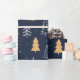 Papier Cadeau Elegant Marine Bleu & Arbre d'or Noël