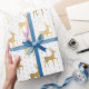 Papier Cadeau Élégant Noël aux rennes blancs et dorés
