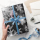 Papier Cadeau Élégant Noël noir blanc argent flocons de neige
