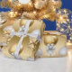 Des ornements métalliques élégants blanc & or créent un look festif pour tous vos forfaits vacances. 100% Zazzle satisfaction client chaque jour.