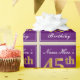 Cette conception simple et élégante de papier d’emballage comporte un message personnalisé tel que "Nom - Voici 45e anniversaire" (avec le "45e" ayant un look de couleur fausse/imitation or) dans une zone carré de couleur violette avec un contour de bordure simple. Le nom est dans un élégant texte blanc de couleur script, et peut être customisé. Un papier comme celui-ci pourrait peut-être être utilisé pour envelopper des cadeaux d'anniversaire pour quelqu'un qui célèbre son quarante-cinquième anniversaire. [~Z0000220]