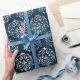 Papier Cadeau Élégant Silver Blue Damask Noël